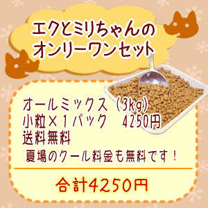 エクちゃんとミリちゃんのオンリーワンセット 定期購入価格: 4,250円レビュー評価: 0.0 レビュー数:0 ■シェフドッグ チキン3kg(小粒)×1個 4250円送料 0円夏季のクール便料金も無料です!------------------------------------------------合計4250円(初回10%オフにつき3825円) |